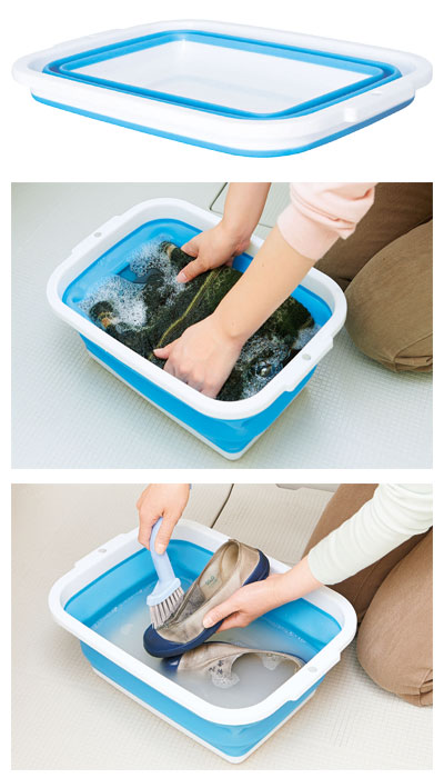 ●サイズ/約幅40×奥行29×高さ14.5cm、折りたたみ時:約幅40×奥行29×高さ4cm●材質/折りたたみ部分:熱可塑性エラストマー、枠・底:ポリプロピレン●耐熱温度/-30〜80℃●生産国/中国 ・場所をとらず、薄く畳める洗い桶です。